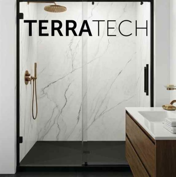 $9,995 "Forever" Shower. Includes labor and material for sintered stone walls with a solid surface base.
